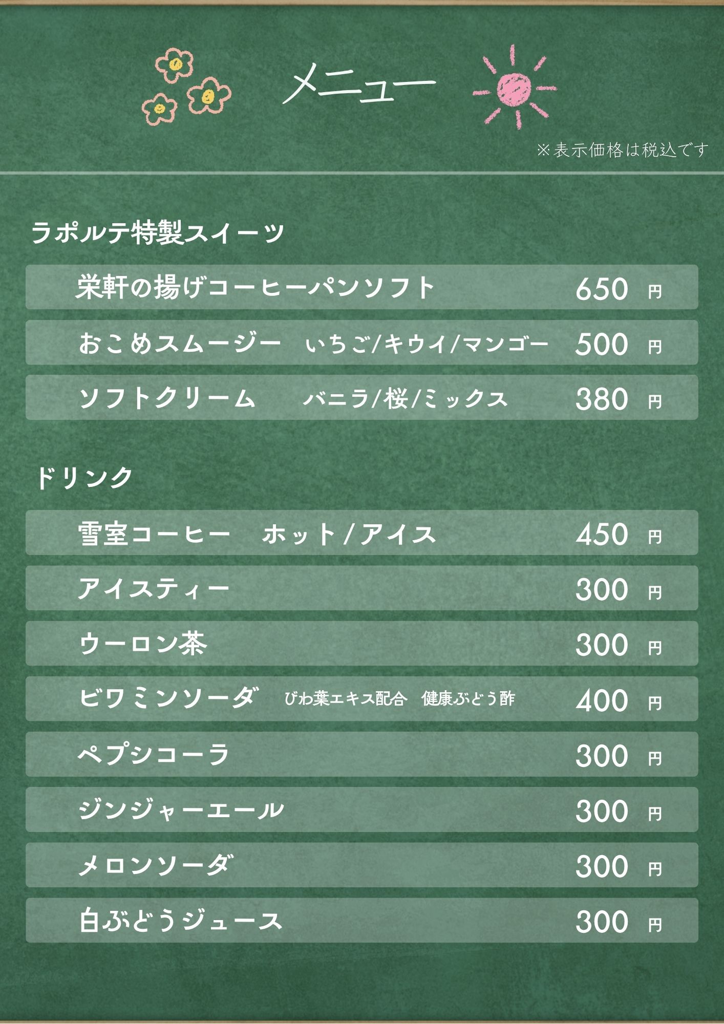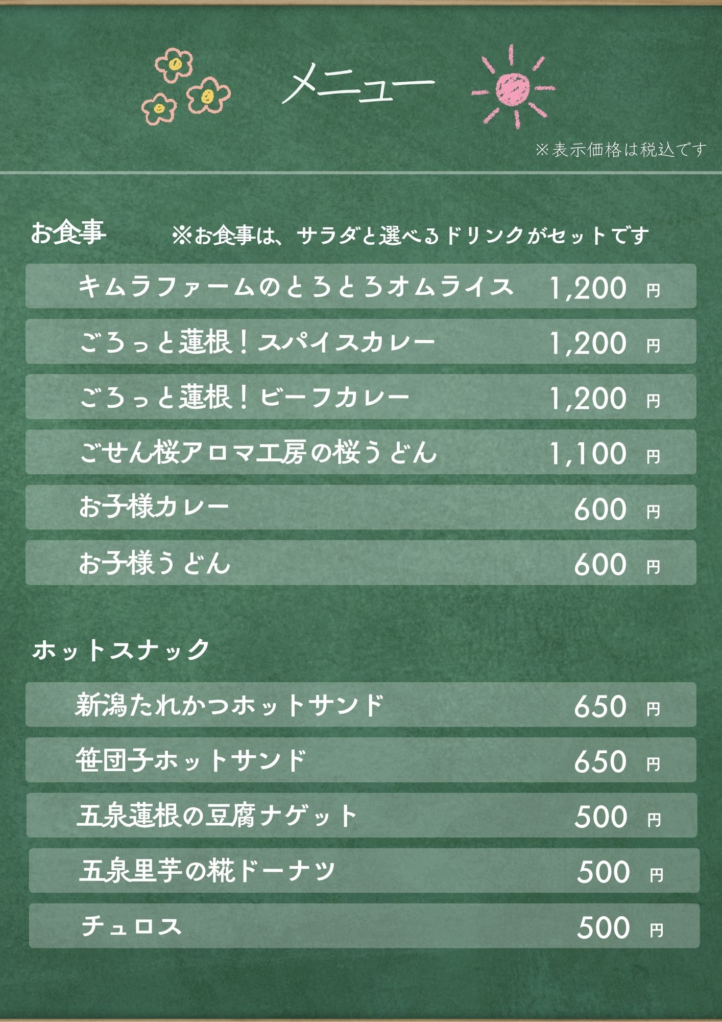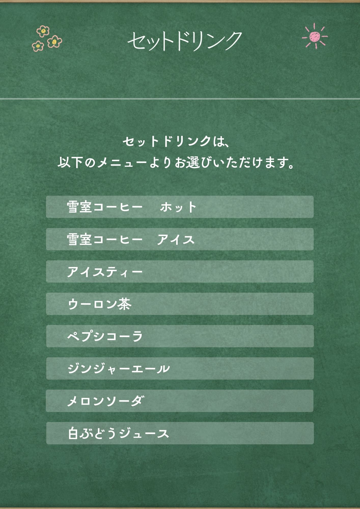 ※ここに掲載したものはメニューの一部です。