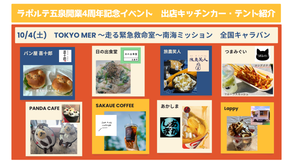 ※お店により出店時間の変更、又は中止になることがございますのでご留意ください。