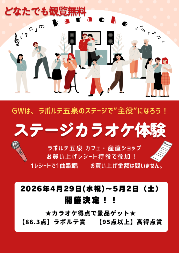 \ステージカラオケ体験 開催/どなたでも観覧無料!